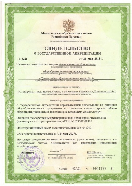 | Сокращенное наименование образовательной организации* | МБОУ "СОШ№6" им. Далгатова Д.М. |